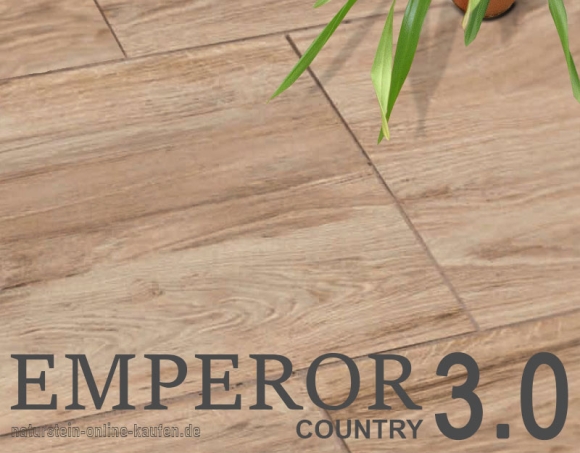EMPEROR Country 3.0 Champagne im Format 120 x 40 cm - diese 3 cm starken Keramik Terrassenplatten prägen klare und helle Holztöne. Die wertvolle helle Holzoptik und das lange Format unterstreichen den einzigartigen Charakter dieses warmen und freundlichen Terrassenbelages. Die Kanten dieser 3 cm starken Champagne 3.0 Platten sind rektifiziert und leicht gefast, damit ist eine Verlegung auf Stelzlager ebenso gut möglich wie im Splitt mit Abstandshaltern.