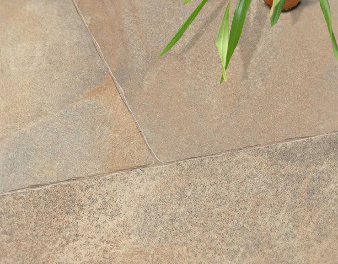 EMPEROR Limerick Pearl besteht aus Feinsteinzeug, das bei sehr hohen Temperaturen gebrannt wird. Die dichte Materialstruktur ergibt eine Wasseraufnahme von typischerweise unter 0,5 %, was die Platte frostbeständig und witterungsresistent macht. Die leicht konische Naturkante ist nicht maschinell rektifiziert, sondern entspricht dem naturgegebenen Kantenstand nach dem Brennvorgang — das Ergebnis ist ein lebendiges, handwerklich wirkendes Verlegebild. Die Oberfläche ist rutschhemmend.