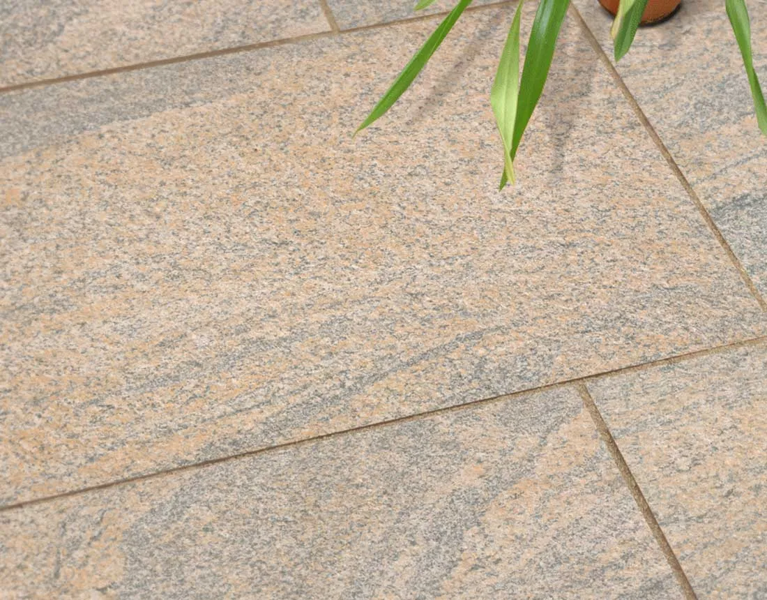Die EMPEROR Juparana ist als frostbeständiger Terrassenbelag für den Außenbereich konzipiert. Das Format 80 × 40 cm eignet sich für Läuferverband, Kreuzverband und andere gängige Verlegemuster. Die 3-cm-Variante mit rektifizierten, leicht gefasten Kanten ist explizit für die Verlegung auf Stelzlagern und im Splittbett mit Abstandshaltern geeignet — eine Verlegemethode, die besonders bei erhöhten Terrassen und Balkonbelägen eingesetzt wird.