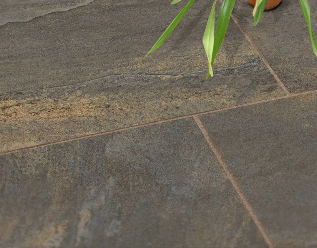 Eine konische Naturkante ist leicht schräg zulaufend, ähnlich wie bei vielen echten Natursteinplatten. Im verlegten Zustand entsteht ein natürliches Fugenbild mit etwas mehr Fugentiefe. Außerdem erhöht die konische Form die Kantenrobustheit gegenüber Stoßbelastungen und reduziert das Risiko von Abplatzungen.