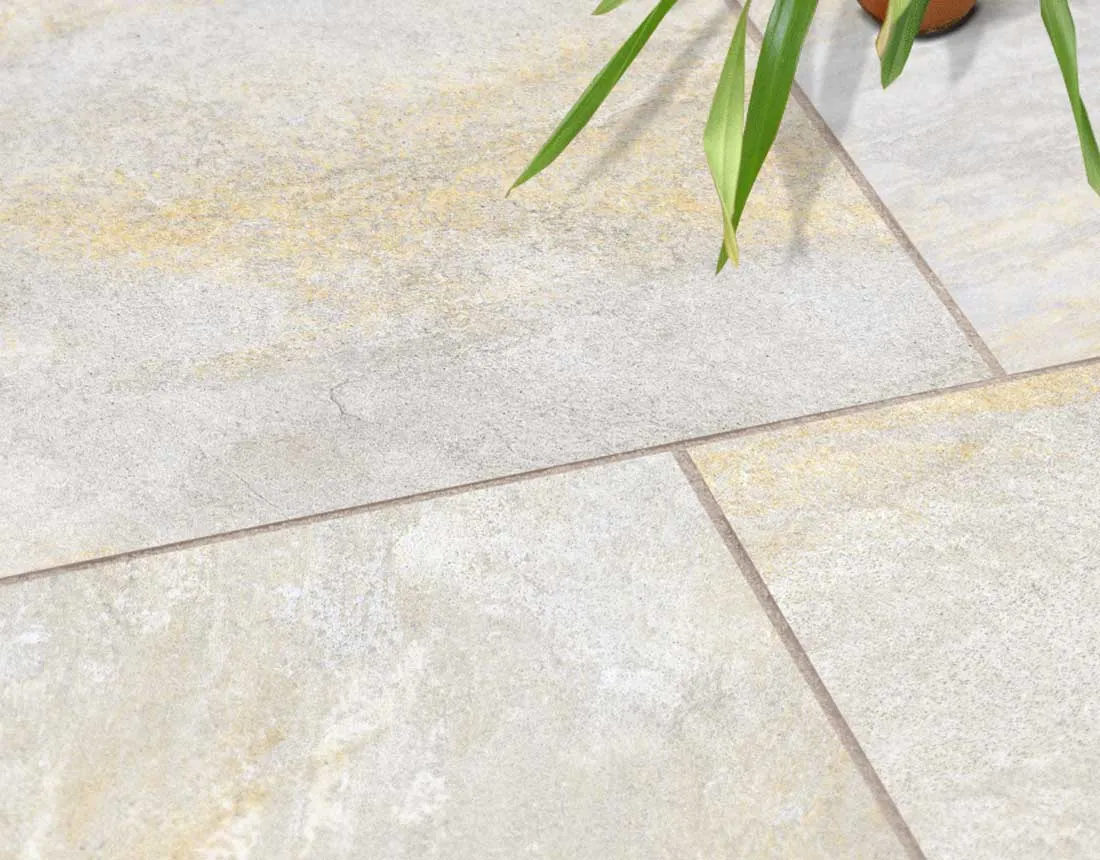EMPEROR Limerick Snow besteht aus Feinsteinzeug, das bei sehr hohen Temperaturen gebrannt wird. Die dichte Materialstruktur ergibt eine Wasseraufnahme von typischerweise unter 0,5 %, was die Platten frostbeständig und witterungsunempfindlich macht.