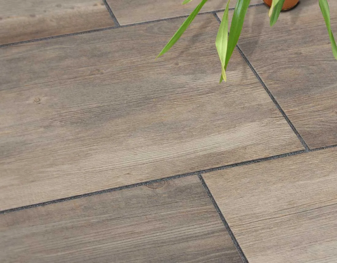 Holzterrassen sind empfindlich gegenüber Feuchtigkeit, müssen regelmäßig geölt oder lasiert werden und vergrauen bei UV-Einwirkung. EMPEROR Walnut bildet die Holzoptik in Feinsteinzeug nach — einem Material, das keine Pflege mit Holzöl benötigt, frostbeständig ist und sich optisch durch Witterung nicht verändert.