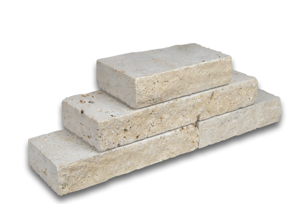 Sie kaufen hier Travertin Mauersteine Classic beige-braun 30-50 cm lang, 18-20 cm tief und 7,5 cm hoch. Die Steine wirken mit ihren cremefarbenen Tönen, den spaltrauen Sichtflächen und den gesägten Lager- und Stirnflächen besonders edel. Der qualitativ hochwertige Travertin aus der Türkei ist robust und frostfest und eignet sich ideal für Außen. Die Mauersteine Classic beige-braun gibt es auch 15 und 22,5 cm hoch zur Verwendung als Schichtmauerwerk oder als Wechselschichtmauerwerk. Unsere Travertin Mauersteine sind die perfekte Wahl, wenn Sie eine edle und haltbare Mauer suchen.